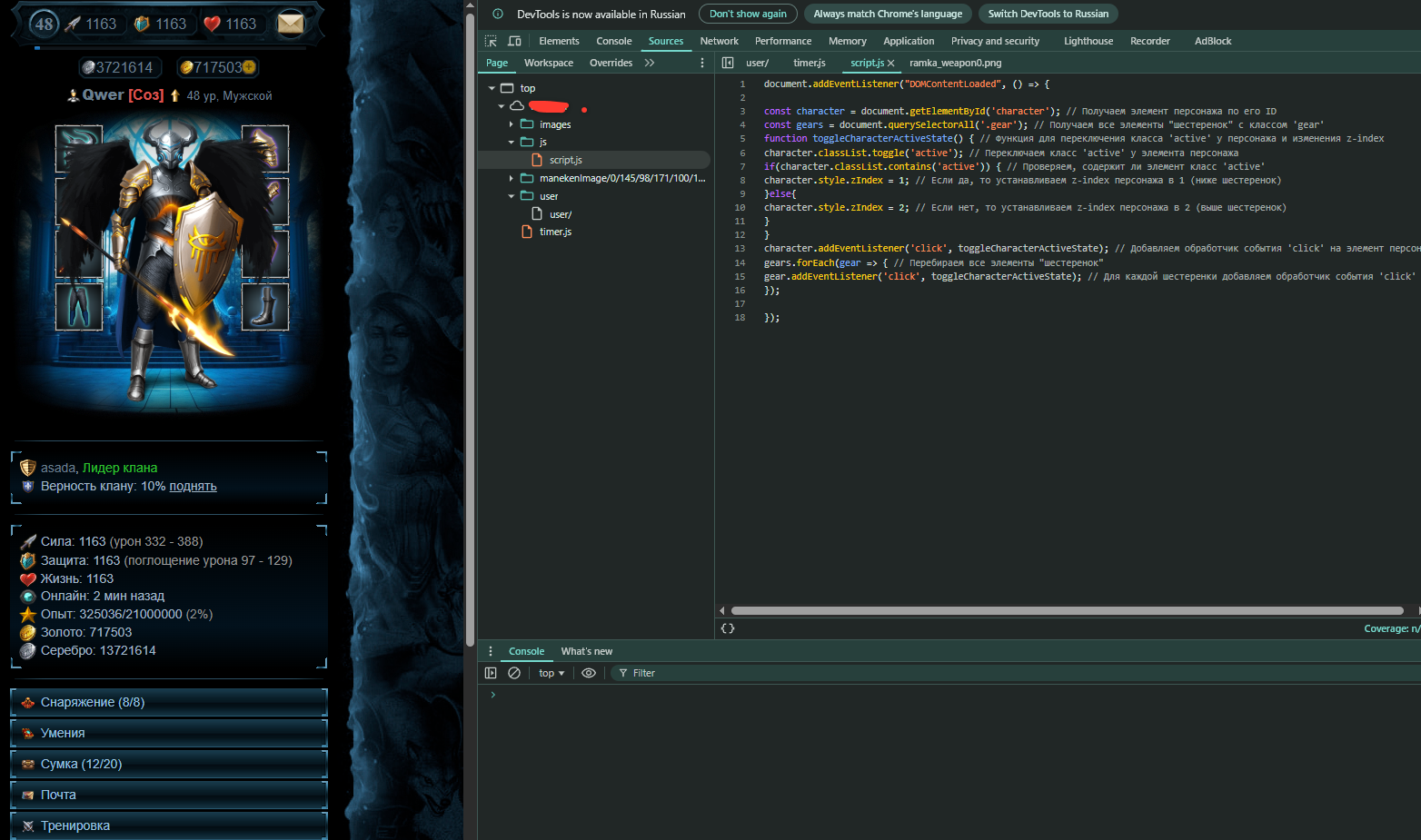 document.addEventListener("DOMContentLoaded", () => { // your code }); Но столкнулся с другой ошибкой в консоли точнее ошибка одна и та же как я понял но на странице профиля нету ошибок в консоли а на любой другой странице ошибка в консоли есть
