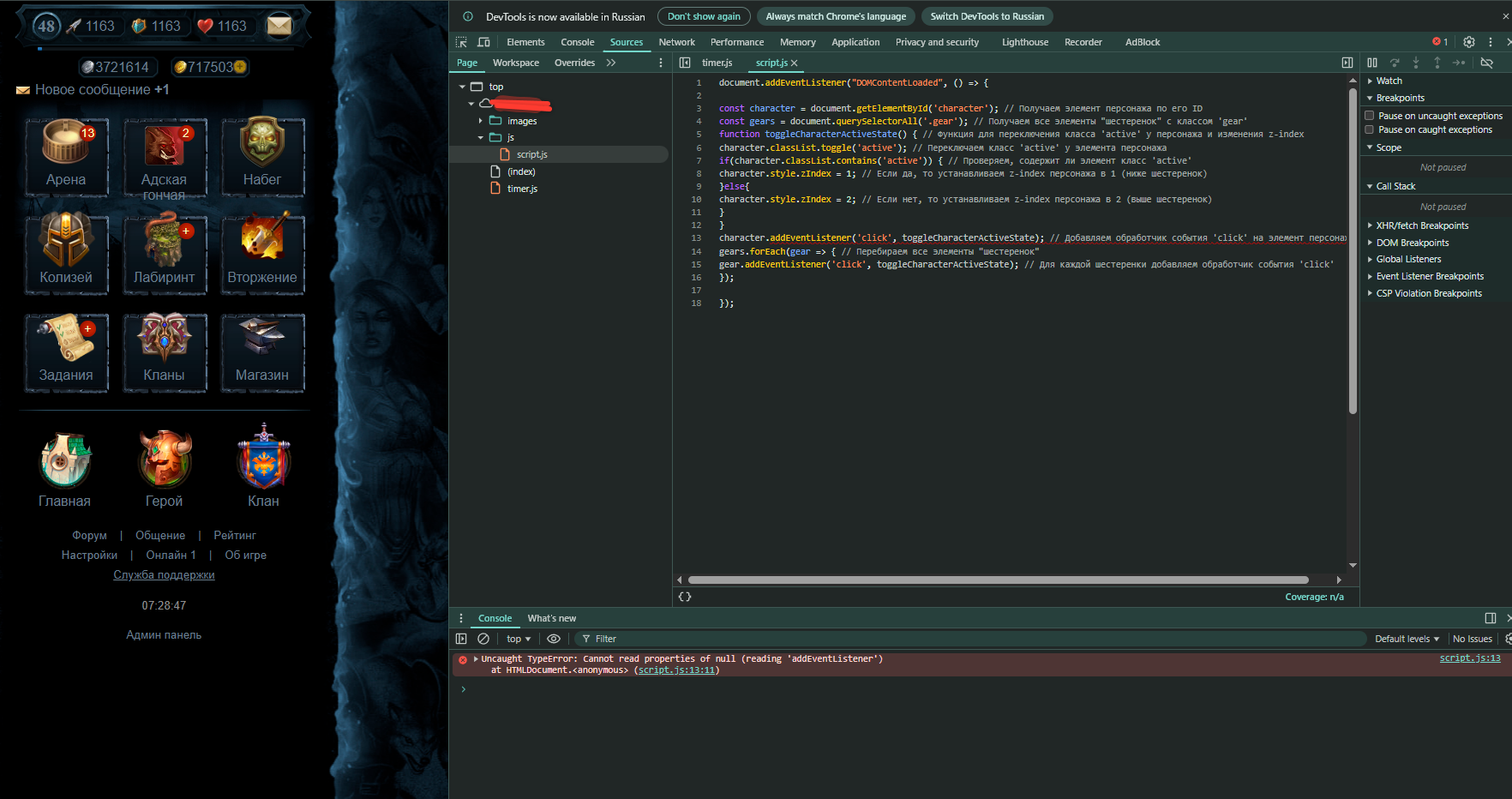(Ошибка: Uncaught TypeError: Cannot read properties of null (reading 'addEventListener'))