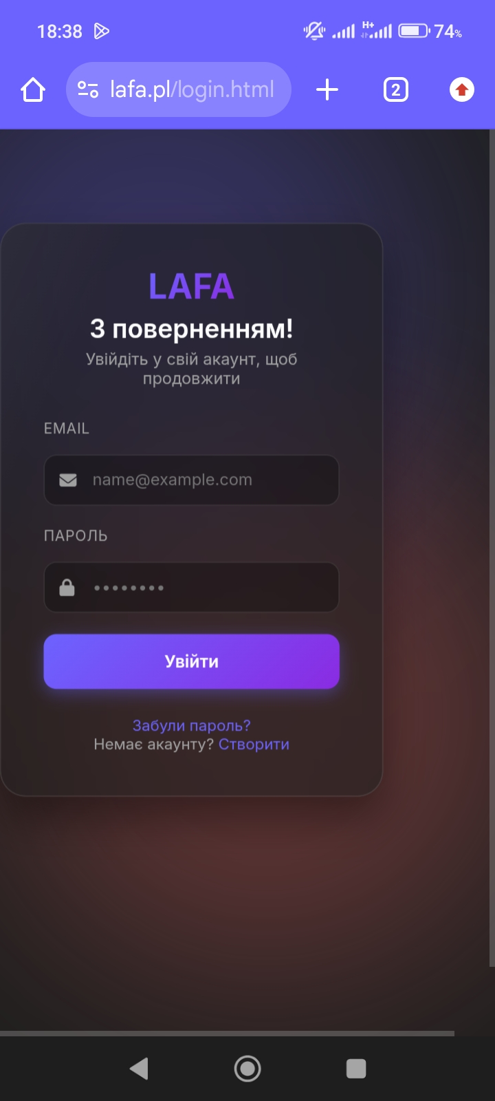 2. Страница регистрации - тоже самое что и с авторищацией