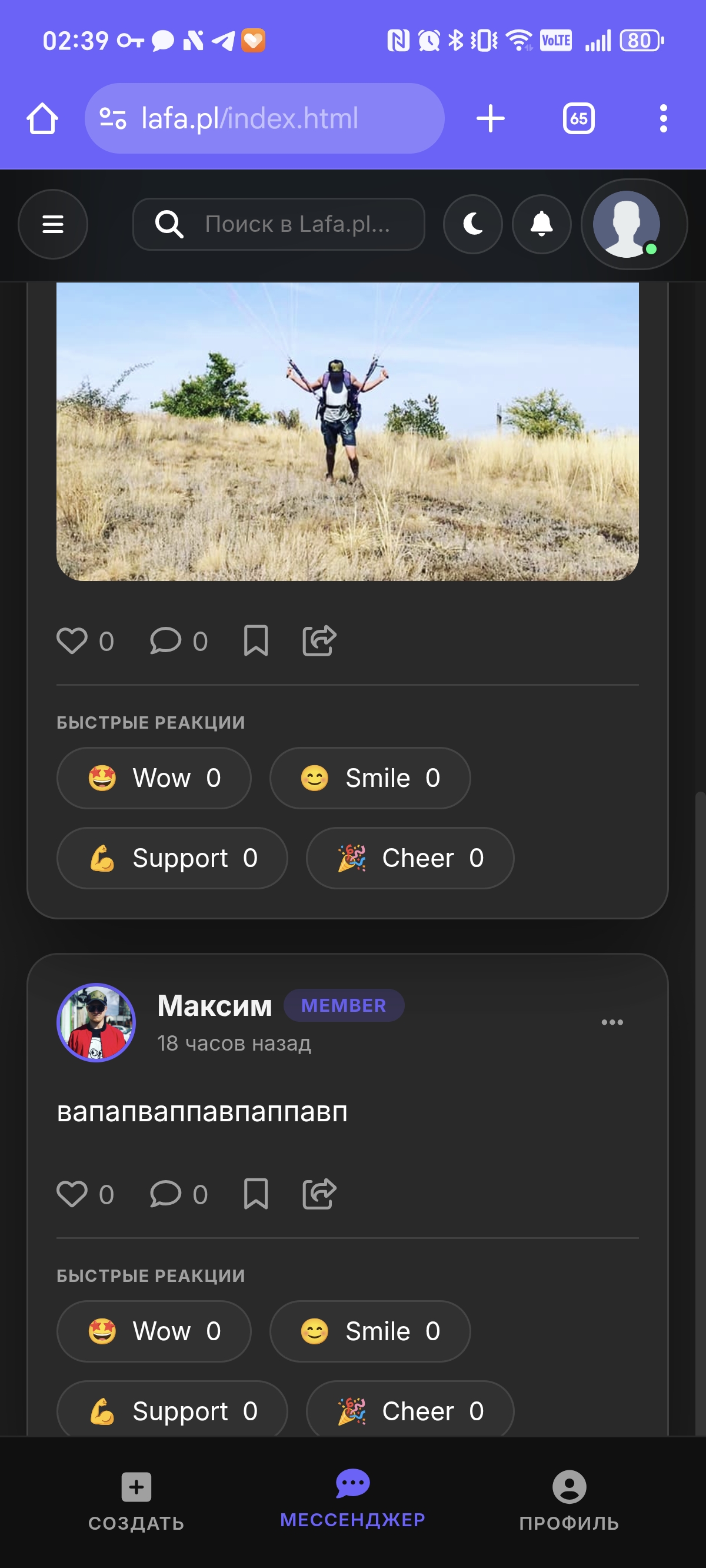 3. Главная страница (лента) - за то тут недоскрол, на скрине видно