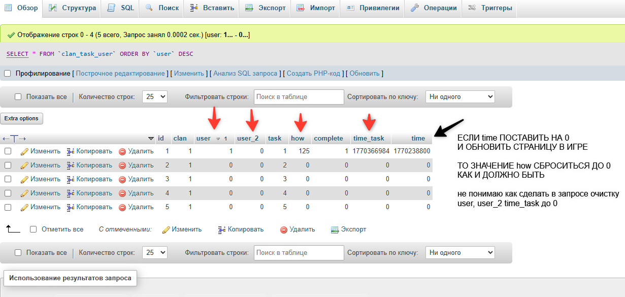 Всем доброго времени суток, помогите пожалуйста исправить ошибочку небольшую. Не обновляется значение user, user_2, time_task до 0 при получений награды в кланах. Награда выдаётся нормально без ошибок.