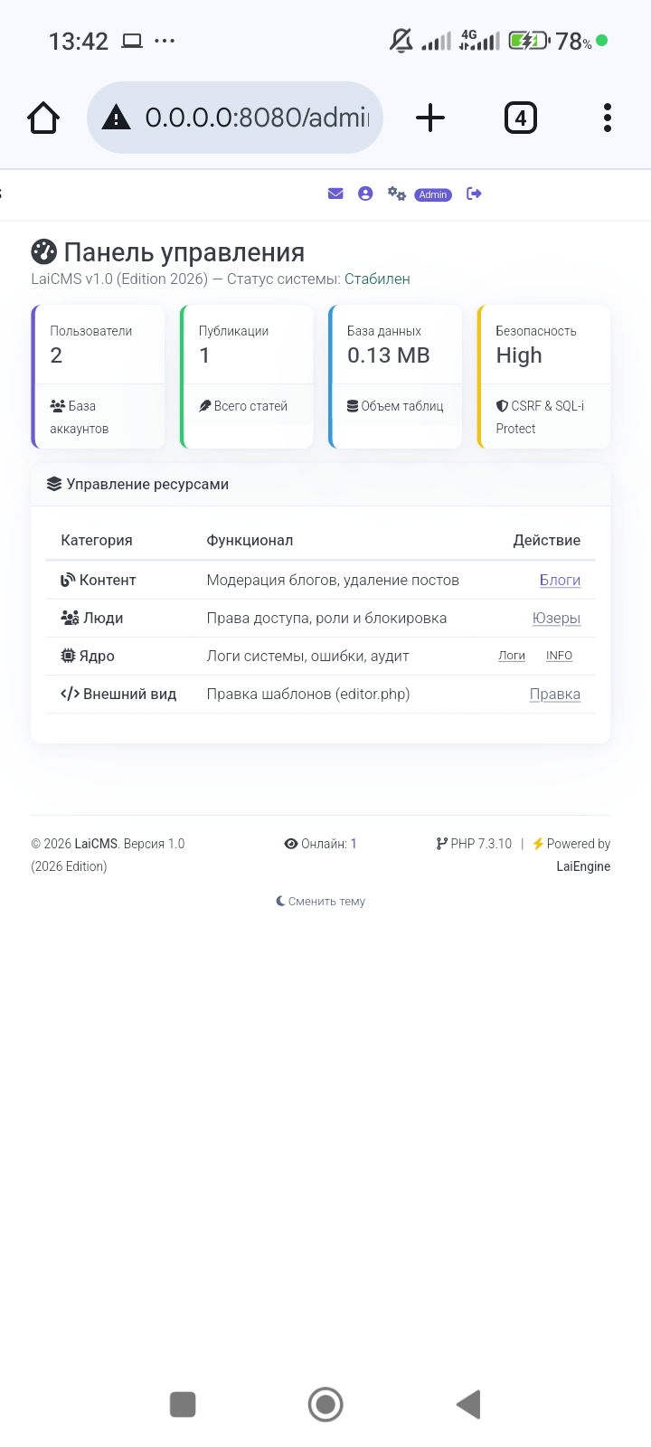 PHP, MySQL | LaiCMS 0.1 движок блогов