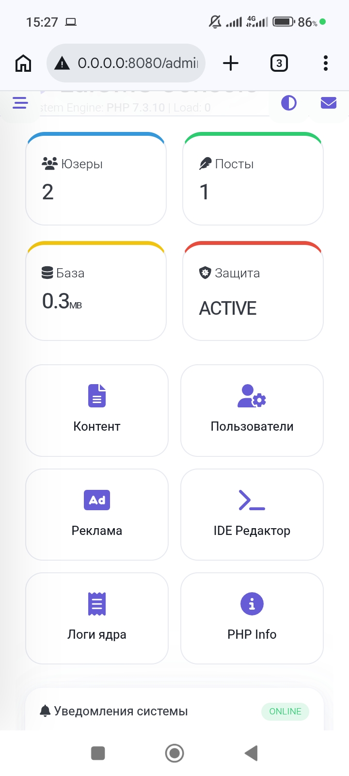 Полностью готовый двиг, тестировался на локальном сервере,если что сами поправите пути в корневом файле индекса
