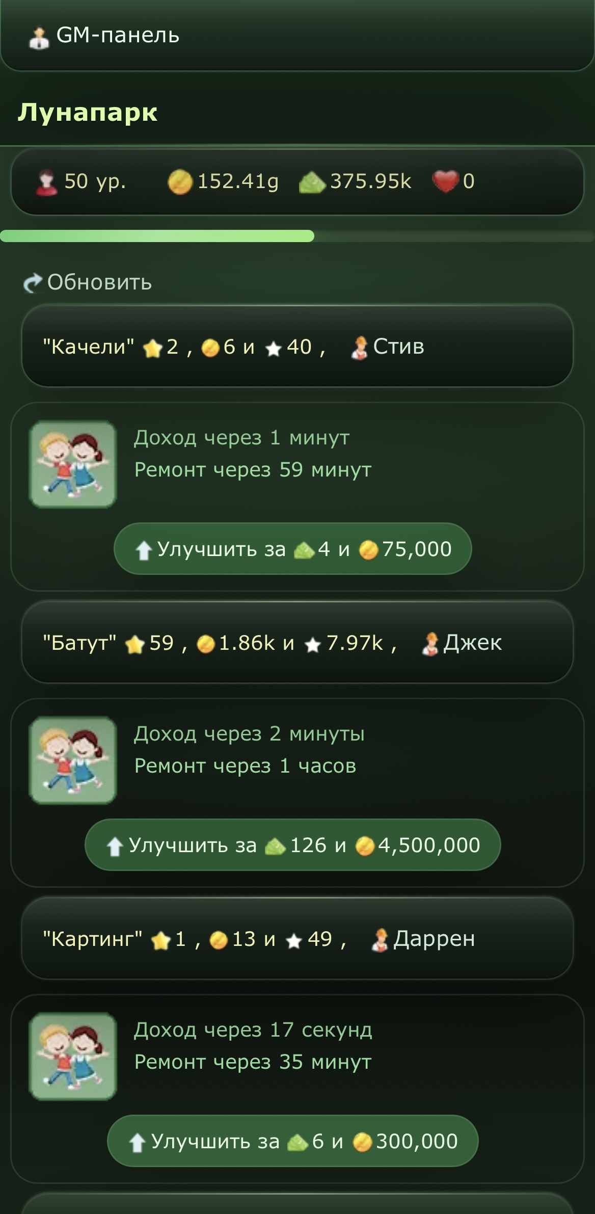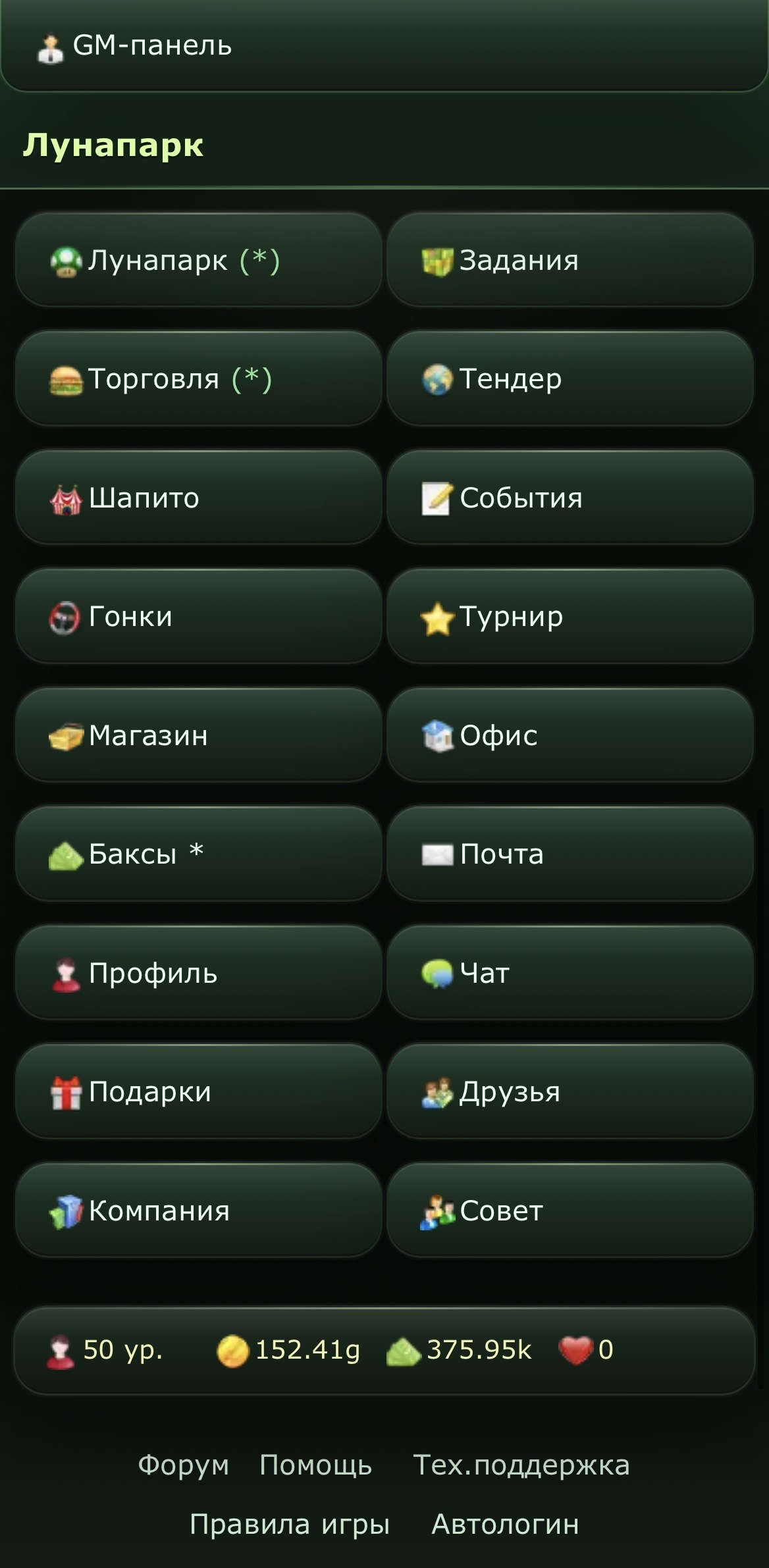 Приветствую, когда-то давно я помню первый раз услышал о этом форуме, первые мобильные хостинги, игры и так далее. Мне вот интересно ли живут сейчас браузерные игры? Ради интереса я вспомнил о проэкте «Лунапарк» Саши проэкт старый, но как ядро не плохо использовать, я перевёл на PHP 8+ если сделать анимации, иной функционал, иконки, то могло бы и получитс что-то интересное…