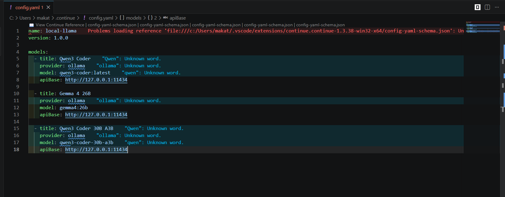 Короче сам Continue в VSCode не подтянул Ollama. Скачал другой IDE і всё работает.