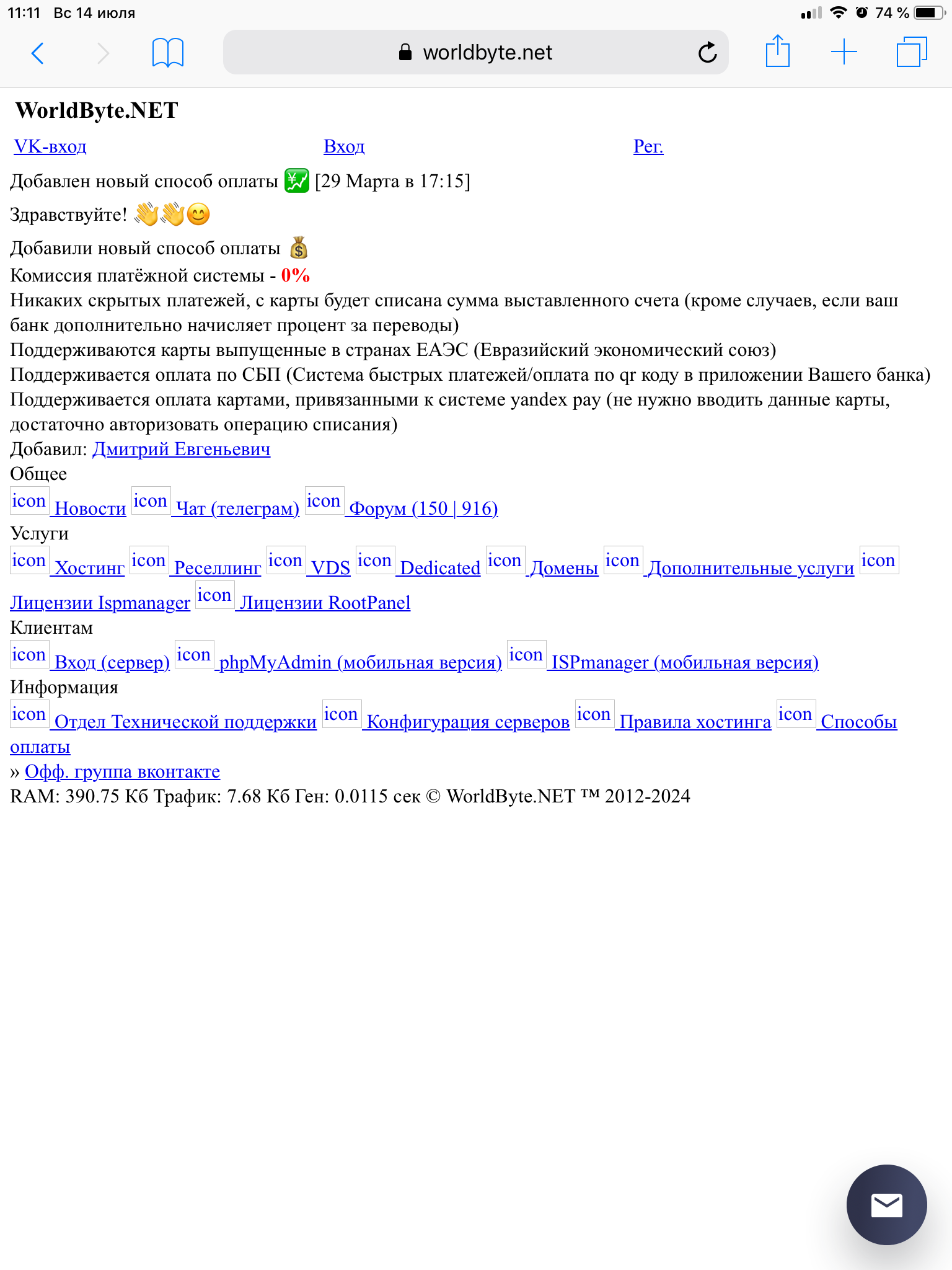 Если ума не хватает понять о чем тема, подскажу. Хостинг, worldbyte.net