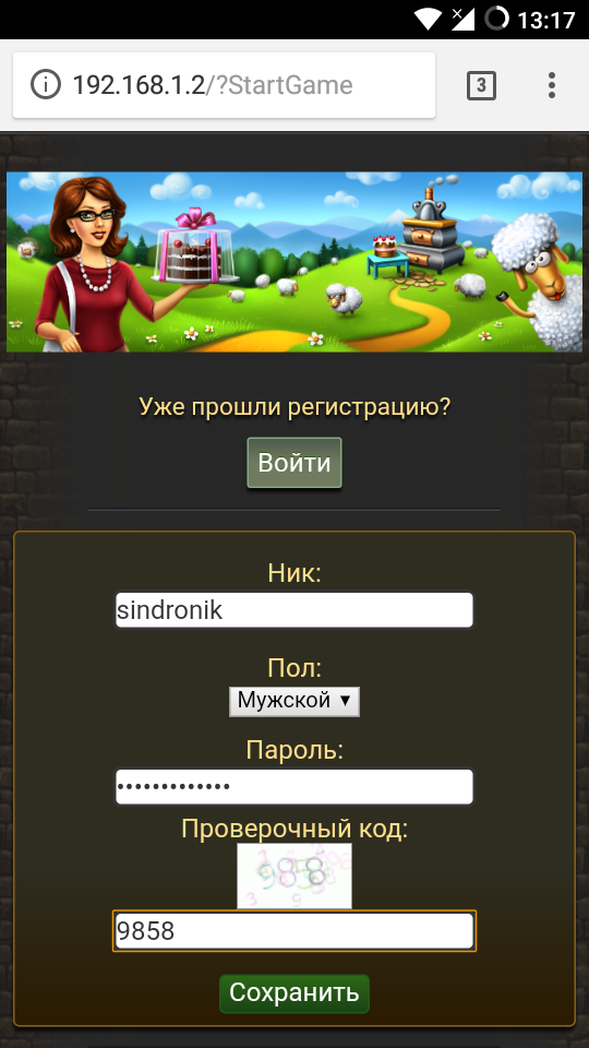 Страница регистрации